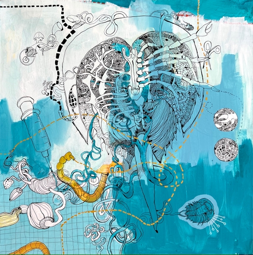 I am inspired by collaborating with marine biologists, and joined a cruise in 2012 to learn more. There is a lot of inspiration to be gained from illustrated science - historically, art and science were under one roof, and many of the earlier scientists were extremely skilled artists. Like for example. Leonardo Da Vinci. Or Ernst Haeckel (1834-1919) - zoologist and skilled draftsman who published several books on the subject, including Art forms in Nature . I am also inspired by fellow artists who have brought science into art.